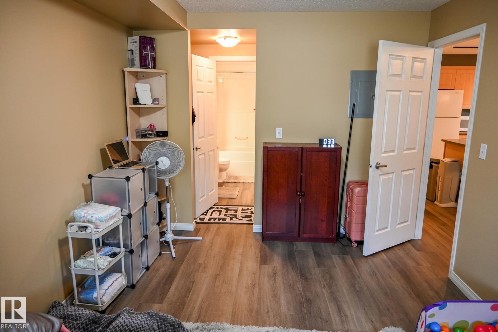 Welcome to your new oasis! This beautifully appointed 1-bedroom, 1-bathroom condo features a new luxury vinyl plank, bright, open-concept layout with a spacious living area and a functional kitchen. Enjoy the convenience of in-suite laundry and a primary suite with a walk-through closet leading to a luxurious 4-piece en-suite. Step out onto your expansive balcony, perfect for morning coffee or evening relaxation, overlooking a quiet parking lot. The building is professionally managed, complete with elevators and heated, secured underground parking (#264). Located just minutes from the international airport and a 5-minute bus ride to the Century Park LRT station, you’ll have easy access to shopping, schools, parks, and all amenities. Being one turn off the Anthony Henday, commuting is a breeze. This condo also offers a fantastic rental pool opportunity, making it ideal for investors or homeowners. With low condo fees of $437.85 that include heat, electricity, and power- you can live with minimal expenses!