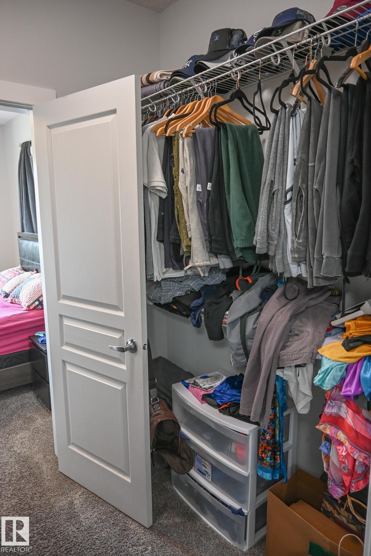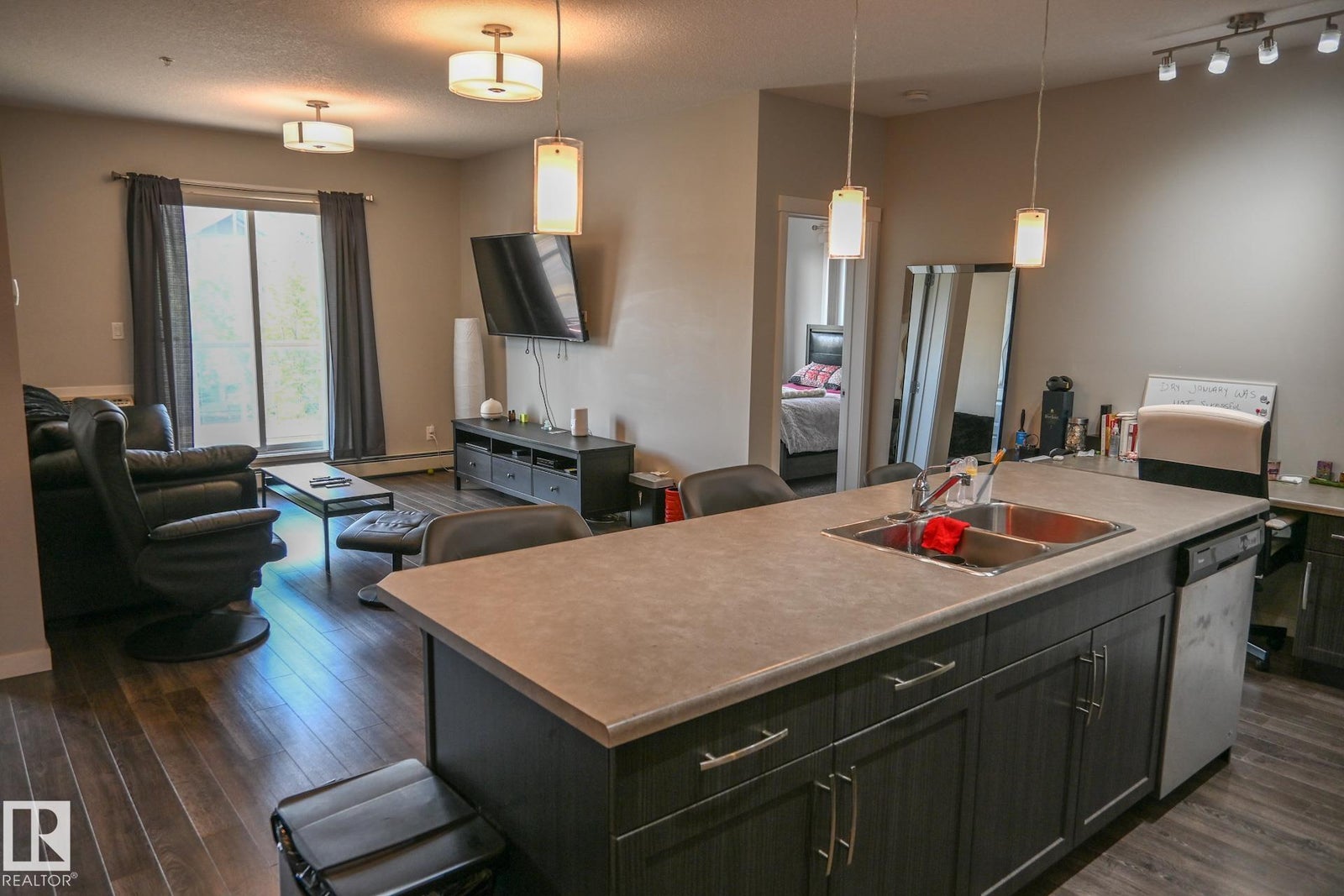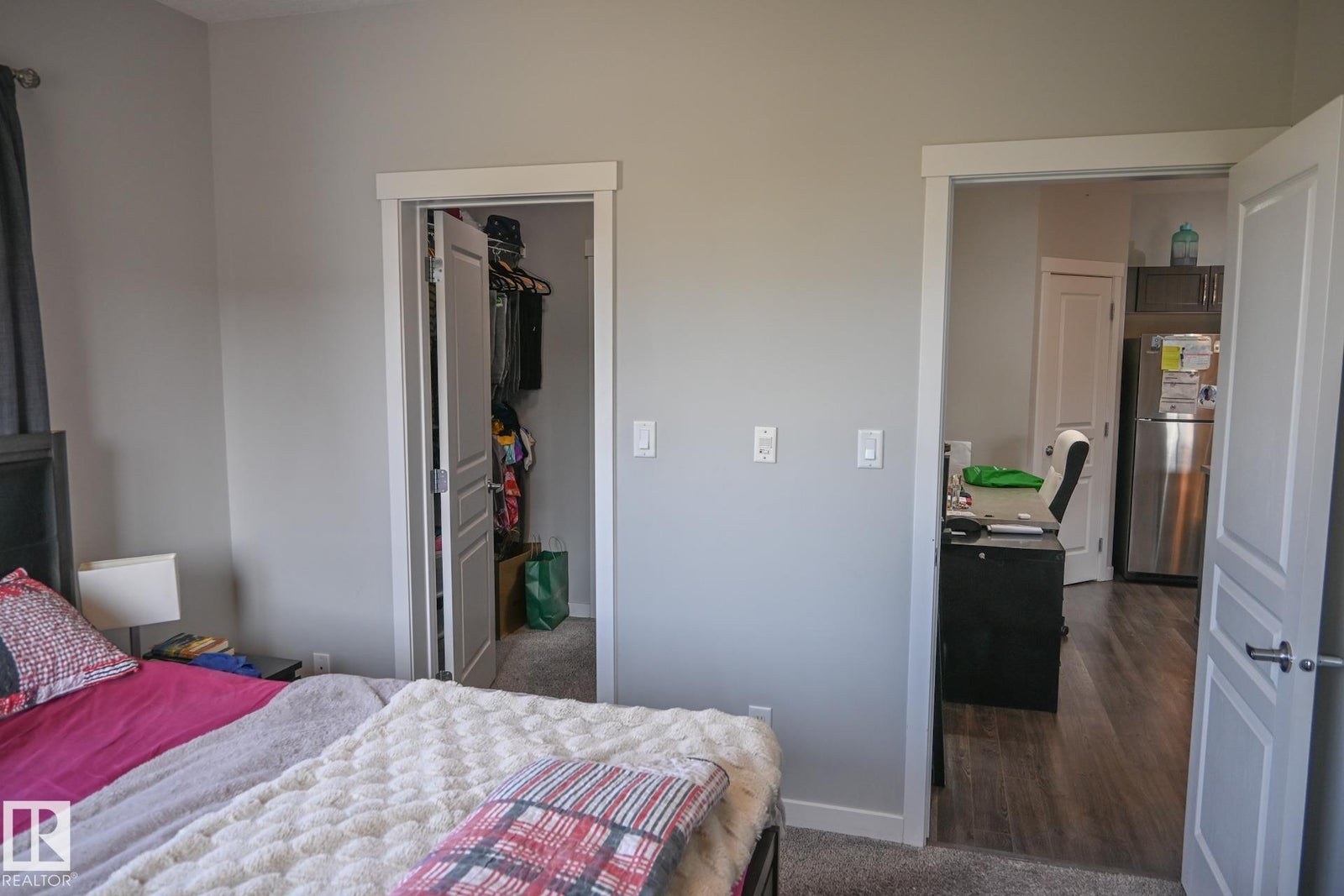 Welcome to this air conditioned bright corner unit in a prime Southeast Edmonton location! Boasting extra windows that flood the home with natural light. Enjoy your own private balcony, perfect for morning coffee or evening sunsets. Step inside to a fantastic open-concept layout featuring a spacious kitchen with an oversized walk-in pantry, plenty of cabinet space, and a handy desk area for work or study. The large living and dining areas are framed by 9' ceilings, giving the space an expansive, airy feel. There are two generous-sized bedrooms, including a master suite with a walk-through closet and a luxurious en-suite bathroom with dual counters and plenty of storage. Comes with a 2nd full bathroom, in-suite laundry, and additional storage, underground parking (#54) for year-round convenience, and a prime location with easy access to public transit, schools, shopping, and grocery stores. With a huge floorplan of 959 square feet! Don’t miss the chance to make this beautiful condo your new home!